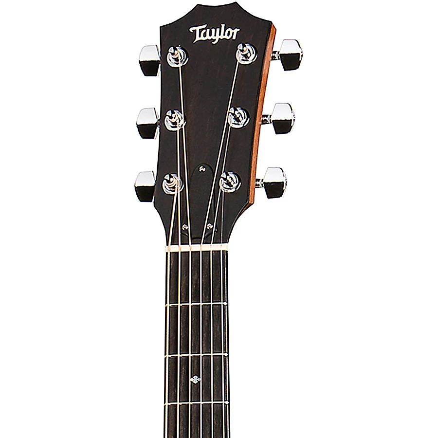 Taylor's popular Grand Auditorium body style provides an ideal balance of size, shape and tone. Its width and depth produce volume comparable to a dreadnought, while a tapered waist results in a sleeker look and livelier response. Rounded shoulders and a sculpted cutaway provide playing comfort. Whether strumming, fingerpicking or flatpicking, the Grand Auditorium is a versatile, accommodating shape that makes playing effortless.