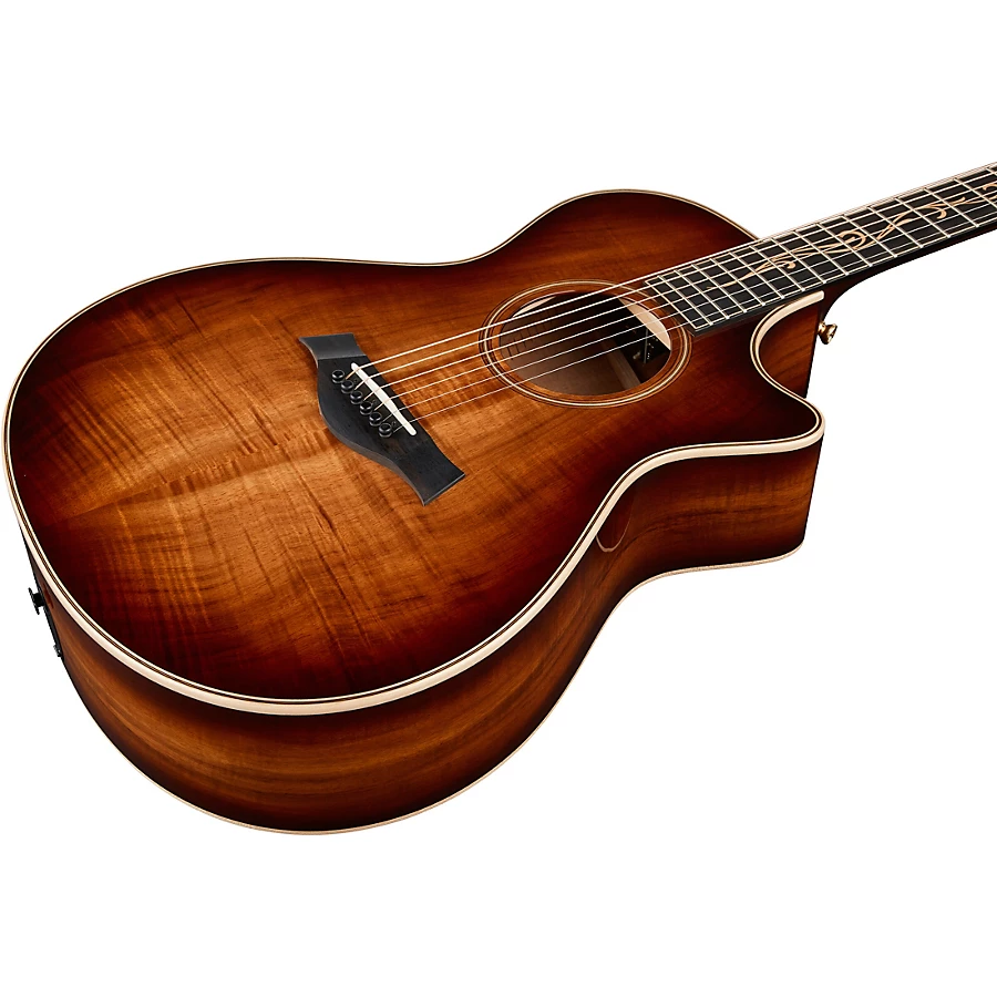 Words fail to adequately convey what might be referred to in Hawaiian as the nani ko-k?- (supremely beautiful) appearance of Taylor's Hawaiian koa guitars, especially those featuring an all-koa body. Taylor celebrates that beauty with an all-wood appointment scheme. A hand-sprayed shaded edgeburst enhances koa��s rich blend of color, figure and grain structure, adding a tasteful vintage aura. Taylor's Koa Series Grand Concert combines Taylor's newest innovation - ?V-Class bracing - with figured Hawaiian koa and Expression System 2 electronics to produce a guitar that is exceedingly stunning - both visually and sonically. Additional details include a lustrous gloss finish on the body, "Spring Vine" maple inlay on the fretboard and peghead, and big leaf maple binding on the body, rosette and and logo. This instrument ships in a Taylor deluxe hardshell case for optimal fit and protection.
