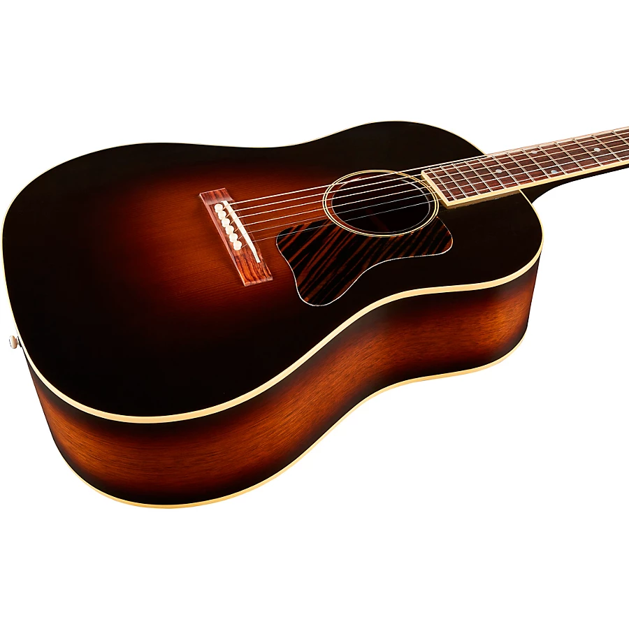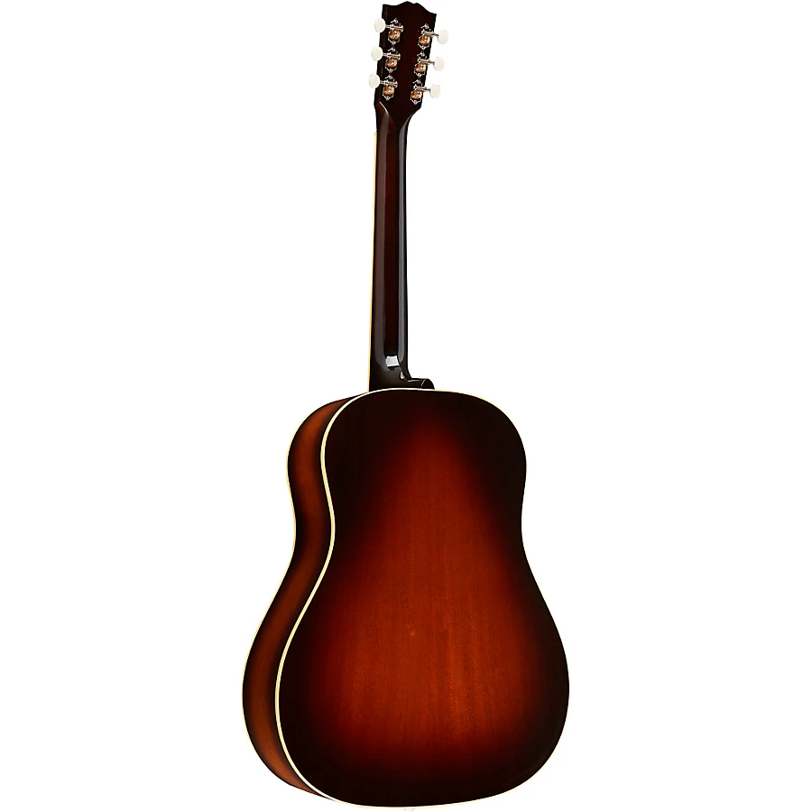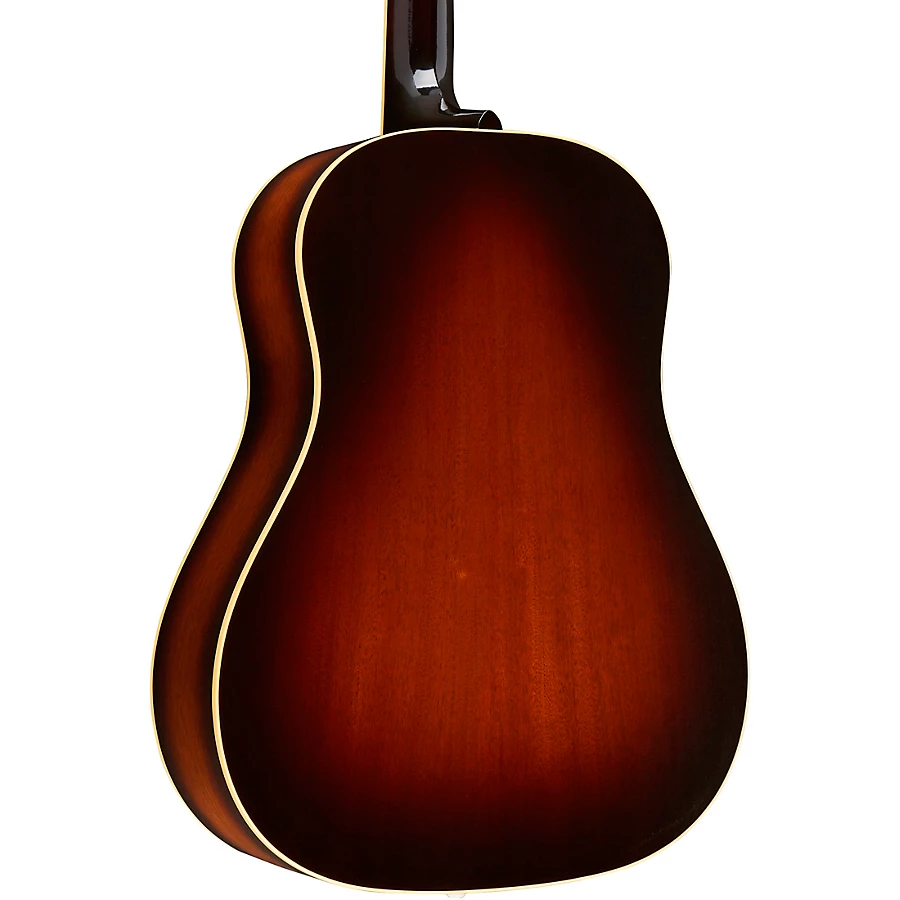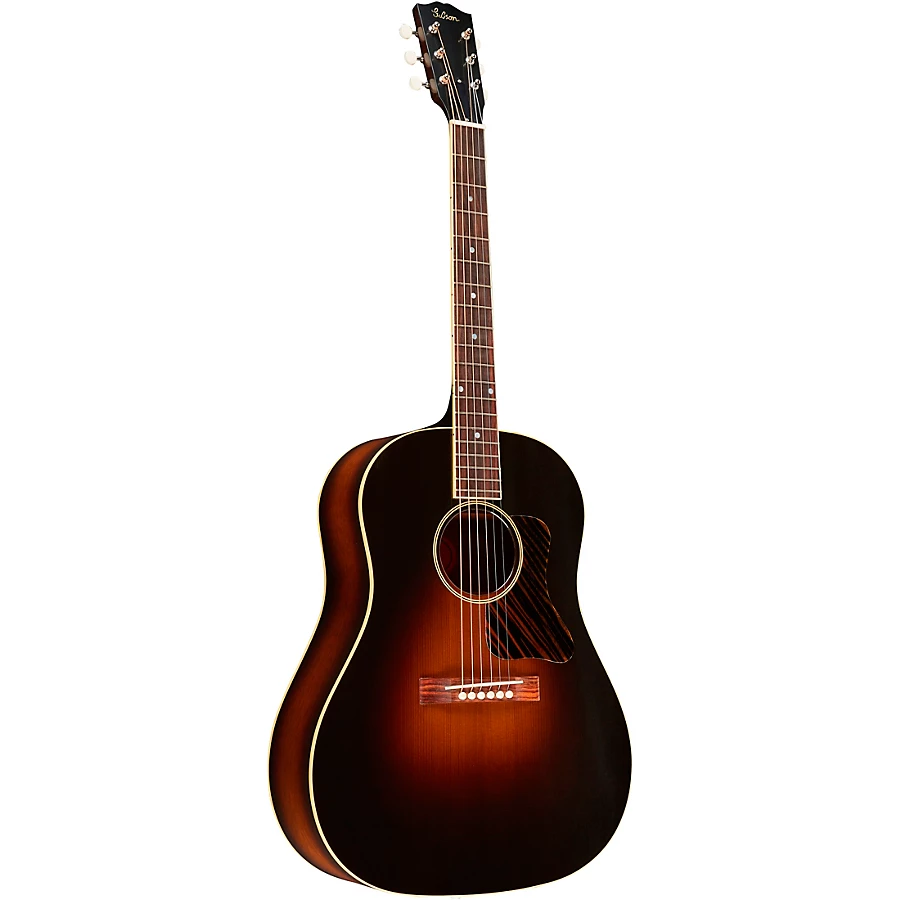 The Gibson 1934 Jumbo is the guitar that started the legacy of Gibson Jumbo acoustics. When Gibson released the Jumbo in 1934, it was larger than any other guitar Gibson offered, and it made for a remarkable instrument. Only built for two production years, these rare instruments quickly became artist favorites and best represent the Gibson sound heard by world-renowned artists and collectors. Thoughtfully recreated with a Thermally Aged Adirondack red spruce top, hot hide glue top bracing, mahogany back and sides, traditional 25'' scale length, and a historic-style V neck profile, the Gibson Acoustic Custom Shop brings back a legend, the 1934 Jumbo.
