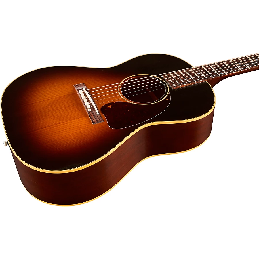 The Gibson 1942 Banner LG-2 is extremely well-balanced, fast-playing and full of tone delivered by a select Thermally Aged Adirondack red spruce top and mahogany back and sides. This little giant produces a charming and seductive tone that rivals much larger-bodied guitars while maintaining exceptional clarity and focus in individual notes. Ideal for folk, blues, and fingerstyle, this delicately balanced model maintains a full dynamic range in a compact package.