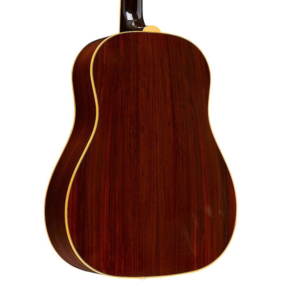 From the "Only a Gibson is Good Enough" banner logo to the open-back tuners, multi-ply binding, and mother-of-pearl parallelogram inlays, the 1942 Banner Southern Jumbo is a tribute to Gibson's golden era of craftsmanship. The 1.77" nut width provides ample string spacing for complex chords and fingerpicking styles. An open-slot bridge and bone nut and saddle deliver vintage-style tone and sustain.