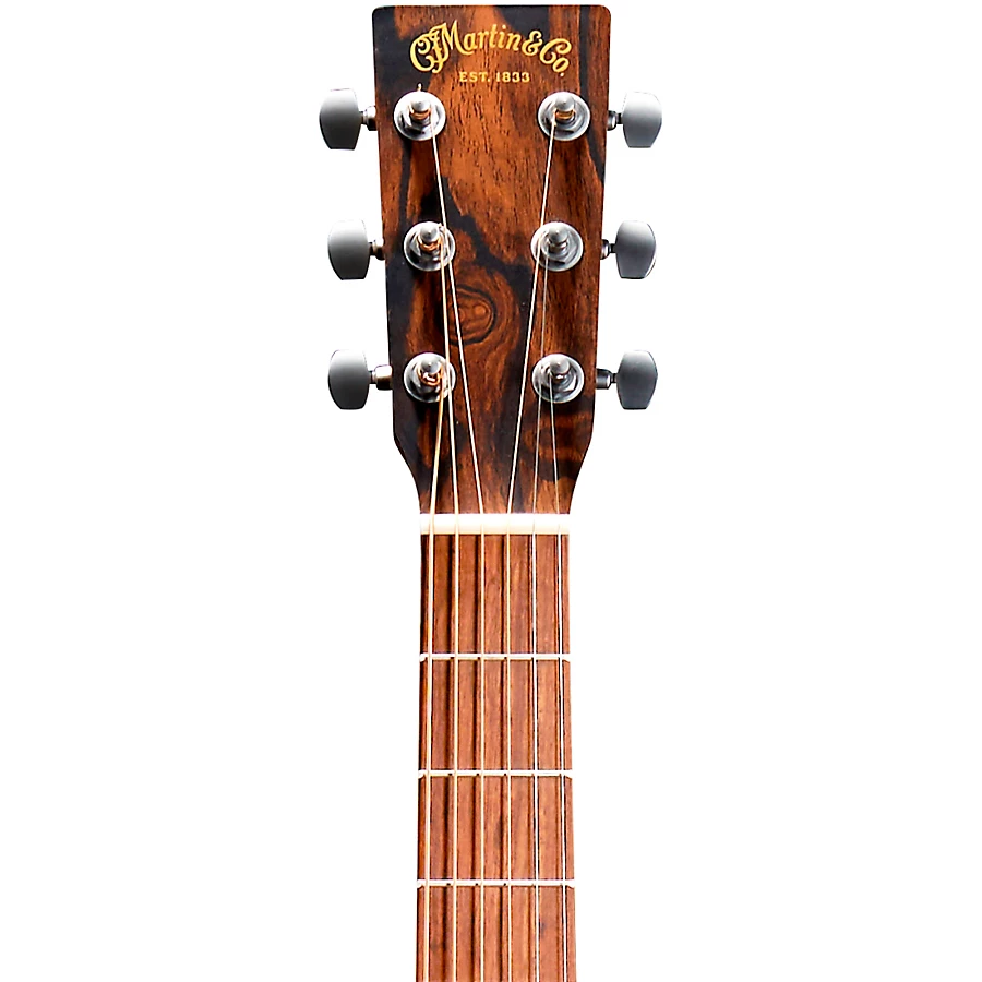 You'll appreciate the comfortable feel of the DX2E's thinner neck profile compared to many traditional Martins. It accommodates both small and large hands. The fingerboard is made from hardy select hardwood topped with 20 easily playable frets. Quality open-gear tuners on the stylish ziricote headstock provide tuning stability. This guitar plays smooth and comfortable thanks to the contoured neck and fingerboard.
