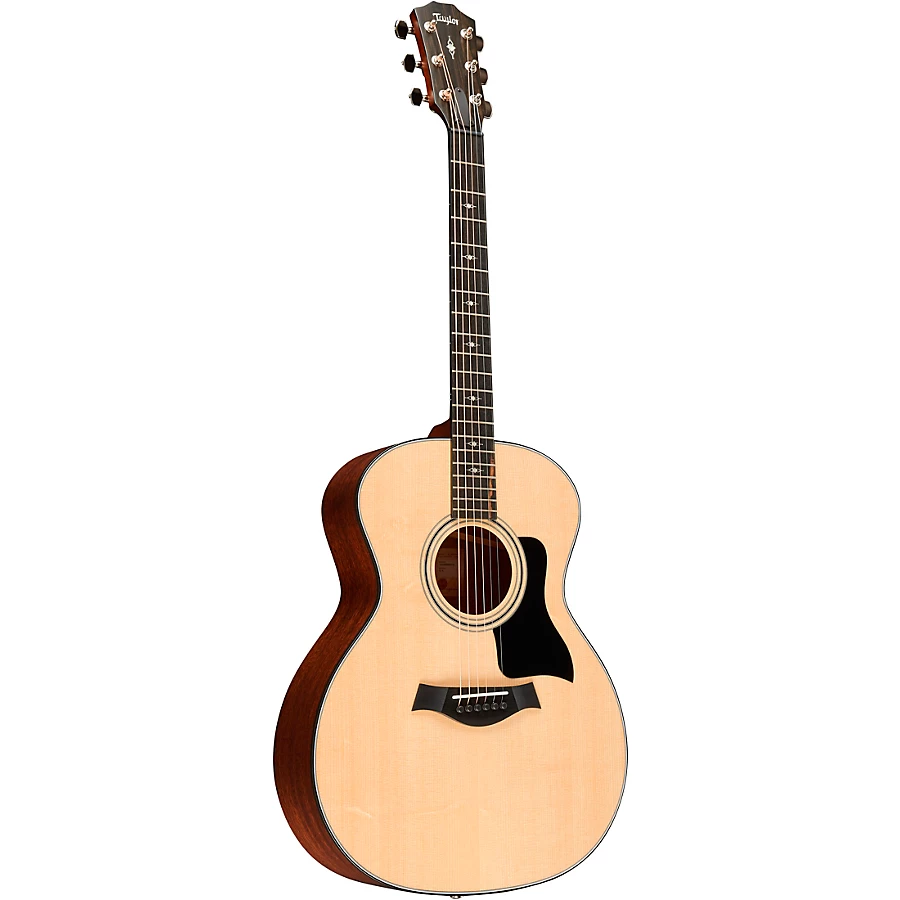 A Taylor original, the Grand Auditorium helped establish the Taylor acoustic sound. The popular body style makes for a versatile guitar that yields ample volume in response to light fingerpicking and reacts to medium strumming and flatpicking with a clear, balanced sound across the tonal spectrum. If you want a great all-purpose guitar, the Grand Auditorium is an excellent choice.