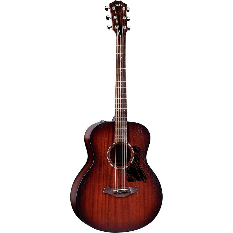Appointments include a solid Neo-tropical mahogany top, solid sapele back and sides, satin-finished body, smooth body edges for comfort and playability, and Taylor��s ES2 electronics for a faithful amplification of the tone of the instrument.