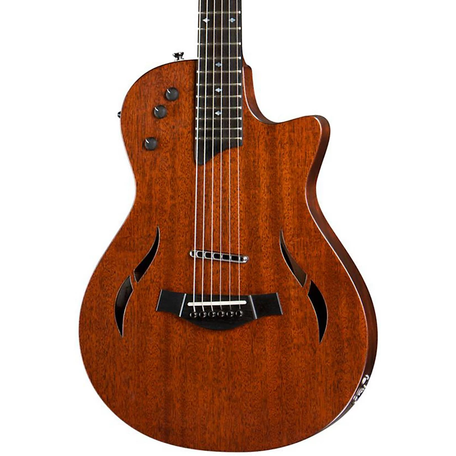 The T5z Classic features a stylish and ergonomic hollow sapele body inspired by Taylor's popular Grand Auditorium design. Stylized f-holes allow the tropical mahogany top to resonate freely, producing a colorful voice with rich sustain. The compact body contours to the player's body for a comfortable feel during long performances. Visually striking, the T5z Classic's unbound body and satin finish highlight the natural beauty of the tonewoods.