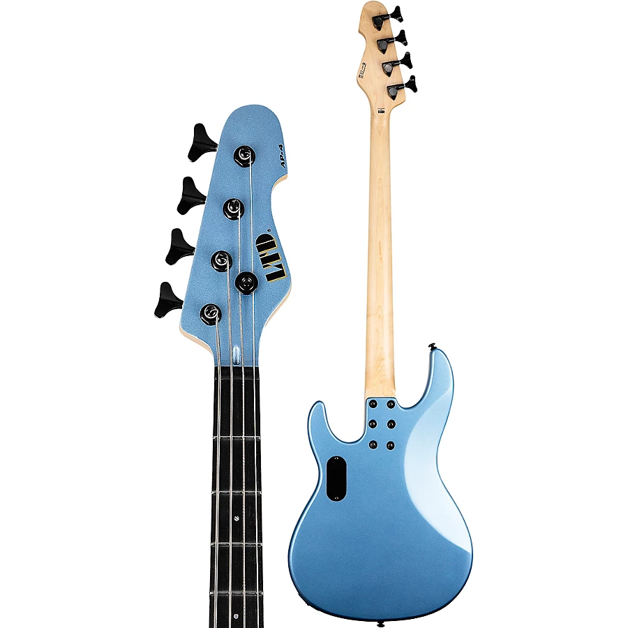 The LTD AP-4 takes traditional bass body styles and adds high-performance components and build quality for contemporary players in all music genres. Using bolt-on construction over alder bodies and maple necks, the AP-4 bass features ebony fingerboard with 21 extra-jumbo frets, Grover tuners, Babicz bridge, and EMG P/LJ active pickups. Available in Black finish.