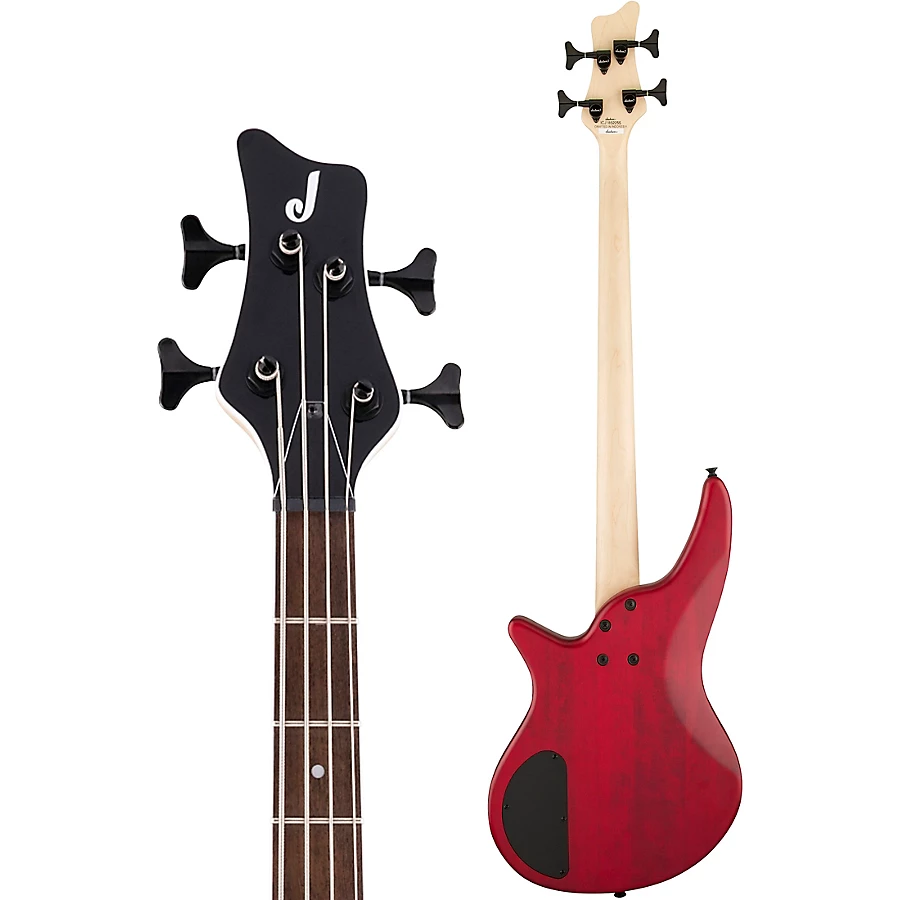 The Spectra Bass JS23 has a unique offset body shape and a Jackson 2x2 headstock for distinctive style. A 34" scale length, 12" radius fingerboard, and speed neck contour provide a fast, comfortable playing feel for any technique. The bass comes in red stain or walnut stain with black hardware for an eye-catching appearance.