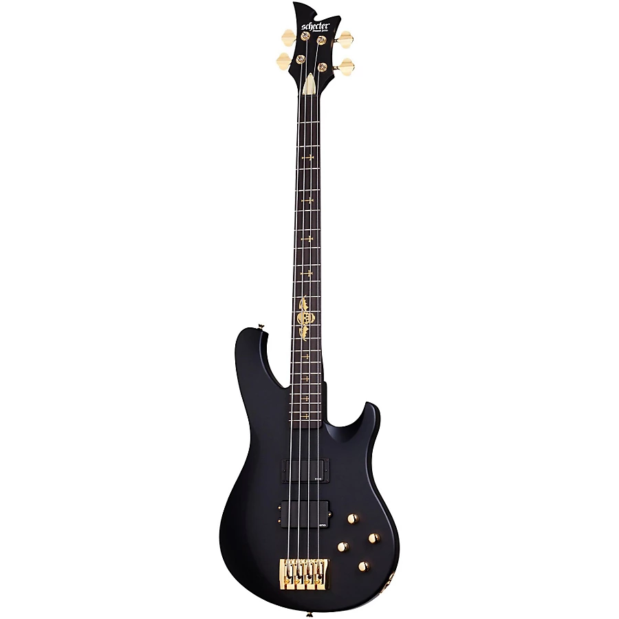 The Johnny Christ signature bass is a modern bass player's dream come true. Built to Johnny's exacting specifications, his signature model features some classic Schecter components as well as some truly custom additions like EMG MMCS/81 active pickups, ebony fingerboard, Grover MINI tuners, 3-piece maple neck, ash body, gold hardware and Gold Bone Cross inlays with the Avenged Sevenfold Skullbat logo at the 12th fret.
