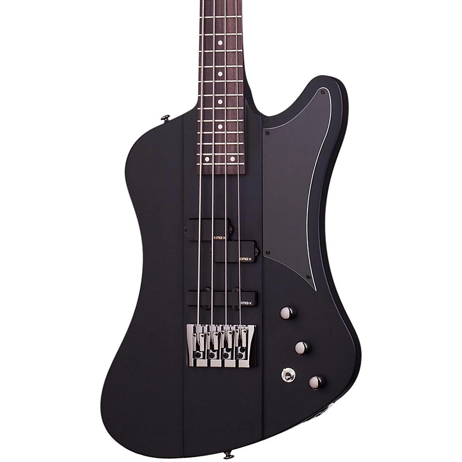 The Nikki Sixx Schecter Sixx Bass has all the style and attitude of Nikki Sixx with all the Schecter goodness you expect. Designed to Nikki's specifications, the Sixx bass is comfortable to play live and in the studio. The reversed offset body shape features mahogany wings attached to a maple/walnut multi-ply thru-neck that produces powerfully dynamic tone and outstanding sustain. The Sixx is loaded with other great features such as a high-mass bridge which can be either top-loaded or strung-through-body, a smooth-playing rosewood fingerboard, EMG active pickups, Grover MINI tuners, and a handy kill switch.