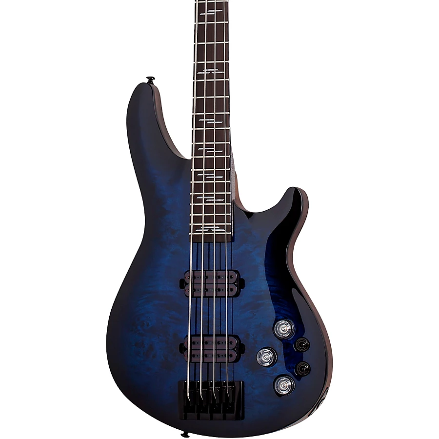 The Schecter Guitar Research Omen Elite-4 bass, a powerful yet affordable 4-string electric bass ready to drop thunderous low end into any mix. Featuring a mahogany body and ultrafast maple neck, the Elite-4 delivers earthshaking tone and lightning-quick response for any playing style. Equipped with dual Schecter Diamond J-Bucker pickups, this bass unleashes fully customizable sound via master volume, master tone and blend controls, as well as a 3-way toggle switch for series, parallel or split-coil operation. The Elite-4's rosewood fingerboard and slim, fast-playing neck feel familiar yet refreshingly unique. Overall, the Omen Elite-4 bass is a formidable fusion of tone and playability available at an incredible value.