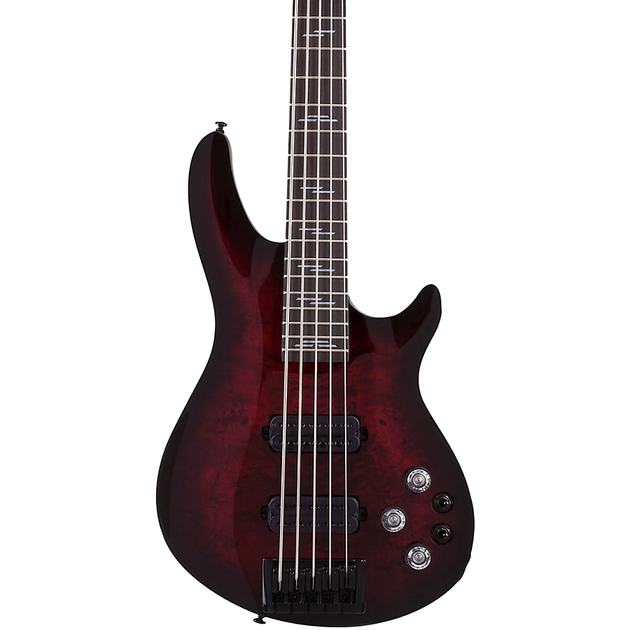 With a striking Black Cherry Burst finish, elegant binding and offset dot inlays, the Omen Elite-5 has an upscale look that belies its accessible price point. The Schecter Guitar Research Omen Elite-5 5 String Electric Bass delivers professional performance and style without breaking the bank.