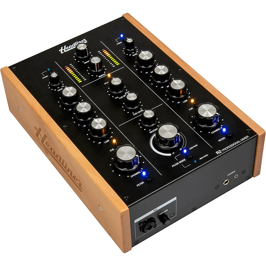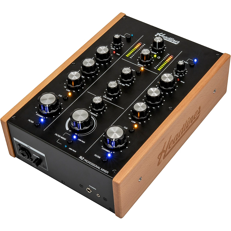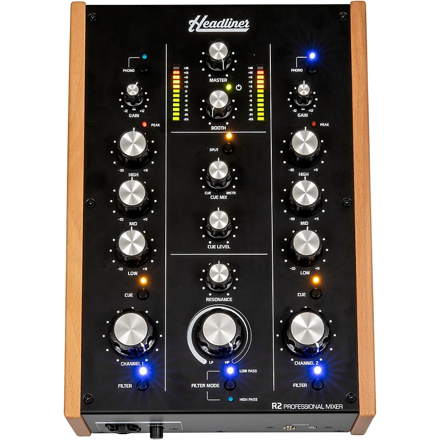 The Headliner R2 is a 2-channel rotary DJ mixer that��s perfect for DJs looking for precise control and a warm sound. The R2 is packed with features like an analog filter and 3-band isolator EQs on each channel, and uses only high-quality components, including genuine ALPS potentiometers.