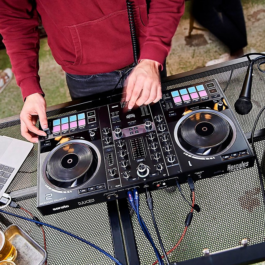 The Hercules DJControl Inpulse 500 is a professional 2-channel DJ controller ready to power your ambitions. Created for Serato DJ Lite and DJUCED software, the Inpulse 500 has everything needed to get started DJing, hone your skills and perform in front of audiences. With a sturdy metal chassis and slip-resistant feet, this DJ controller is built to withstand the rigors of frequent use and travel. The Inpulse 500's intuitive layout features large touch-sensitive jog wheels, 16 backlit RGB pads and dedicated filter and effects sections to craft seamless transitions and remixes on the fly.