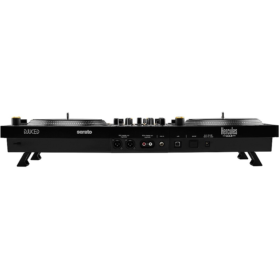 Hercules designed the T7 DJ controller to be a flexible performance and practice tool. It's equipped with XLR main outputs��letting you connect directly to a front-of-house mixer or a powered PA system��headphone jacks and a microphone input. The integrated audio interface provides clear, balanced sound quality. Weighing just 11 pounds, the T7 is easy to take anywhere. Retractable feet make it fit in tight spaces, while the included semi-rigid gig bag offers protection during transport. With its portable design, realistic platters and extensive controls, the T7 is the ideal controller for kicking your DJ skills up a notch.