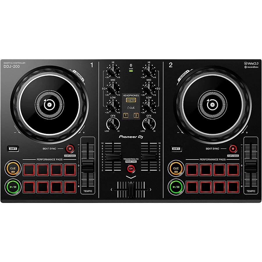 The Pioneer DJ DDJ-200 Smart DJ controller makes DJing more accessible than ever. Pioneer DJ designed this innovative 2-channel DJ controller to be approachable for new DJs, yet powerful enough for seasoned professionals. Its intuitive layout mirrors a traditional setup with a mixer section in the center and jog wheels on either side. The jog wheels provide responsive, tactile control over playback, scratching and beat juggling. Rubber pads for Hot Cue, Pad FX and Beat Loop stand ready for triggering samples, effects and loops on the fly.