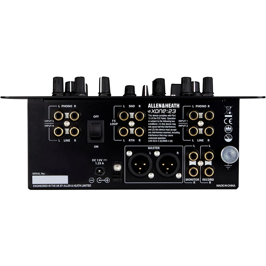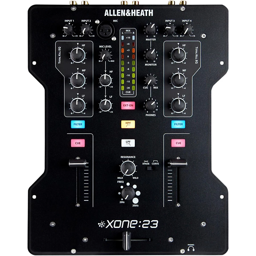 Xone:23 is a 2+2 channel DJ mixer packed with pro features that would normally be found in the booth of a top-rated club, including an enhanced version of the legendary Xone filter with resonance control, VCA faders, 3 band total kill EQ, illuminated switches, crossfader curve selector and styling inspired by the flagship Xone:DB4.
