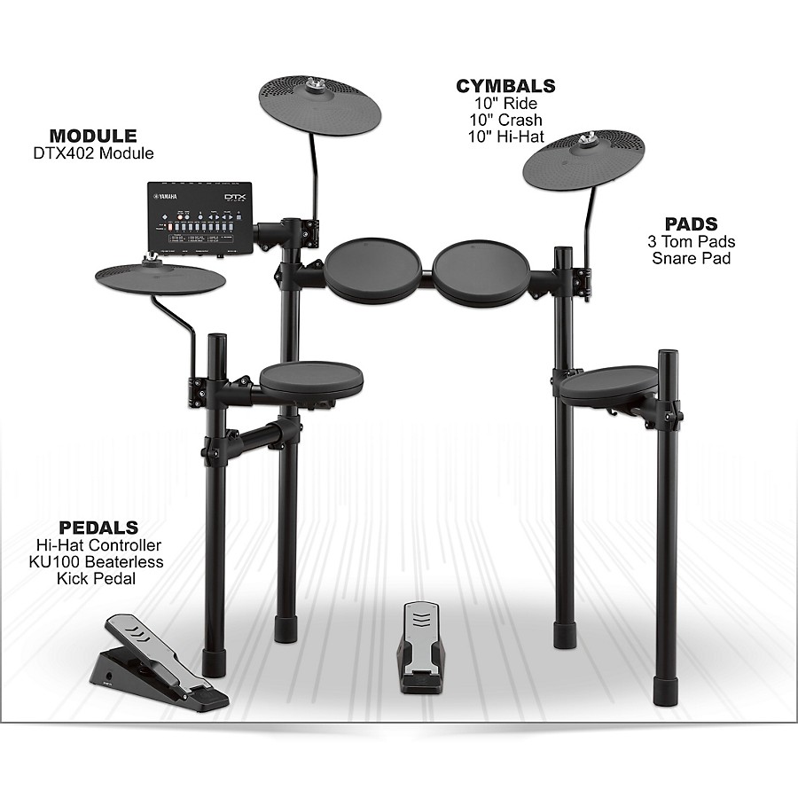 The DTX402 series includes 10 kits, 10 songs and 10 training functions that cover popular genres of music. You can customize each kit with 287 high-quality drum and percussion sounds. Onboard training functions are a great way to evaluate and improve your drumming. The free DTX402 Touch app allows you to easily engage the module whether you��re editing kits, training or testing your skills, and the free Rec'n'Share app allows you to listen to your favorite music while recording high-quality audio and video with your phone or tablet.