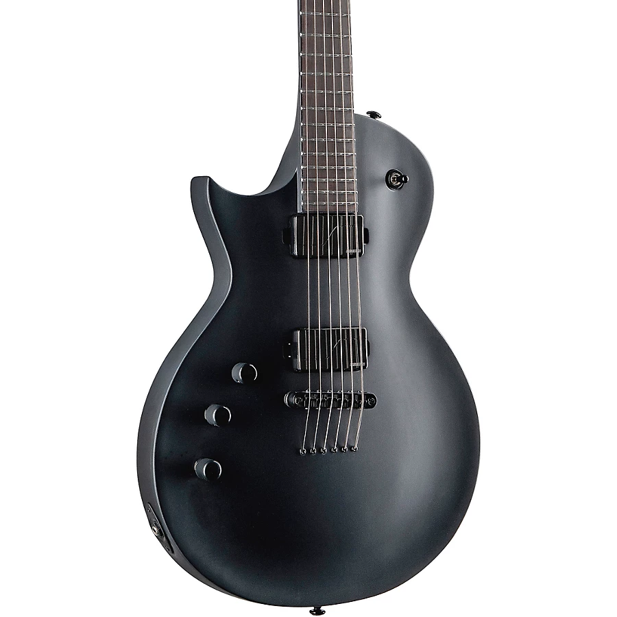 The ESP LTD EC-1000 Baritone left-handed electric is the extended range guitar you��ve always wanted, delivering the single-cutaway Eclipse shape in a 27�� baritone scale. Typically tuned a fourth below standard, from B to B, this is the six-string guitar that lets you explore the downtuned sounds of modern rock and metal while still maintaining ideal string tension. Its darkly minimalist design features black single-ply binding and a Macassar ebony fingerboard with no inlays and glow-in-the-dark Luminlay side dots. The EC-1000 Baritone features 24 extra-jumbo stainless steel frets, a TonePros locking TOM bridge with string-thru-body and powerful tones from a set of direct-mount Fishman Fluence Modern Humbucker active pickups (alnico in the neck and ceramic in the bridge). The pickups also include a push-pull control to select voicings and classy black nickel covers.