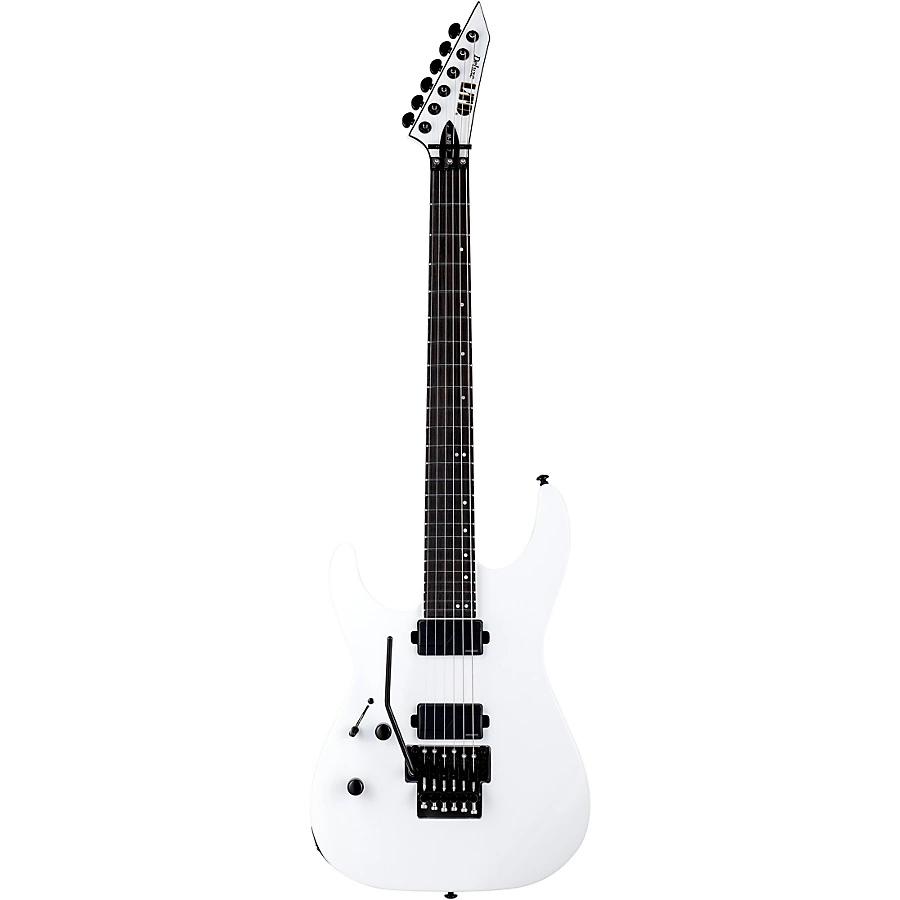 The ESP LTD M-1000 left-handed electric guitar delivers an updated spin on one of the sleekest guitars in ESP��s M Series, with outstanding design, neck-thru construction and a set of direct-mount Fishman Fluence Modern Humbuckers (alnico in the neck position, ceramic in the bridge), with a push-pull control to activate each pickup��s second voicing. This guitar also features a comfortable alder body, a satin finish on the back of its extra-thin U-shaped neck and a compound neck radius. Its Macassar ebony fingerboard has black binding, 24 extra-jumbo stainless-steel frets and offset mother-of-pearl dot inlays. Components include Grover tuners and a Floyd Rose 1000SE bridge with stainless steel screws.