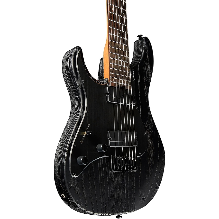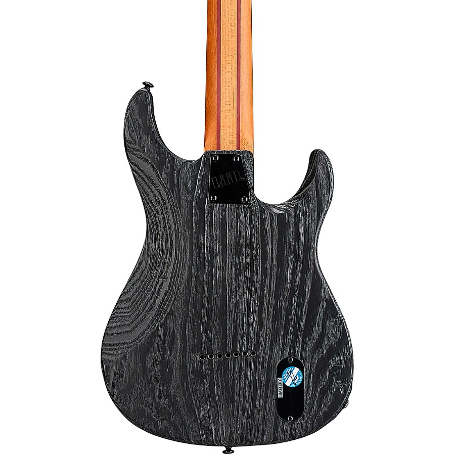 The ESP LTD SN-1007 Baritone HT left-handed electric guitar features seven strings and a 27�� baritone scale, making it ready to explore the depths of modern metal. It offers a swamp ash body paired with a bolt-on roasted maple/Purpleheart neck for maximum speed and comfort. Its Macassar ebony fingerboard includes 24 extra-jumbo stainless steel frets, mother-of-pearl dot inlays and is scalloped from frets 17-24. Additional components on the SN-1007 Baritone HT include a 48mm black bone nut, a brushed black pickguard, dome control knobs, LTD locking tuners and a Hipshot hardtail bridge with string thru body. It features a set of Fishman Fluence Modern Humbuckers (alnico in the neck position, ceramic in the bridge), with a push-pull control to activate each pickup��s second voicing.