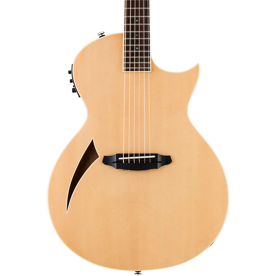 ESP's TL Series are specially designed thinline transducer-electric LTD guitars featuring their Acoustic Resonant Chamber. The TL-6 comes with premier components like a Graph Tech NuBone-XB nut and saddle, Grover tuners, and Fishman pickup technology. It also features a mahogany body with a set neck, and a spruce top paired with a rosewood fingerboard. The Fishman Sonicore pickup comes with discrete, soundhole-mounted rotary controls for volume and tone. Case sold separately.