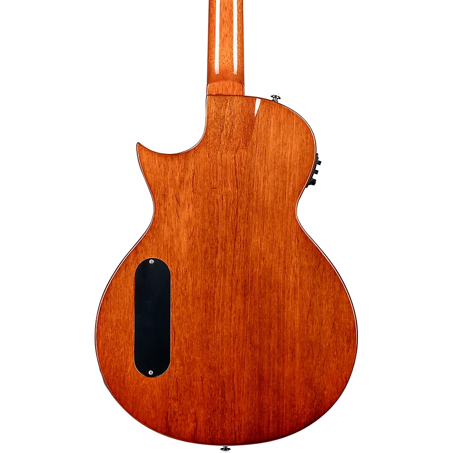 The ESP LTD TL-6 Thinline Acoustic-Electric Guitar utilizes traditional set-neck construction for optimal resonance and sustain. Its chambered mahogany body delivers a rich, organic acoustic voice, while the striking flamed maple top provides gorgeous visual flair. Together, these tonewoods produce clear, balanced acoustic tones with plenty of warmth and depth. Whether you're performing live or tracking in the studio, the TL-6's traditional build and mahogany body provide the bold, full-bodied acoustic sound you'd expect from a quality acoustic guitar.