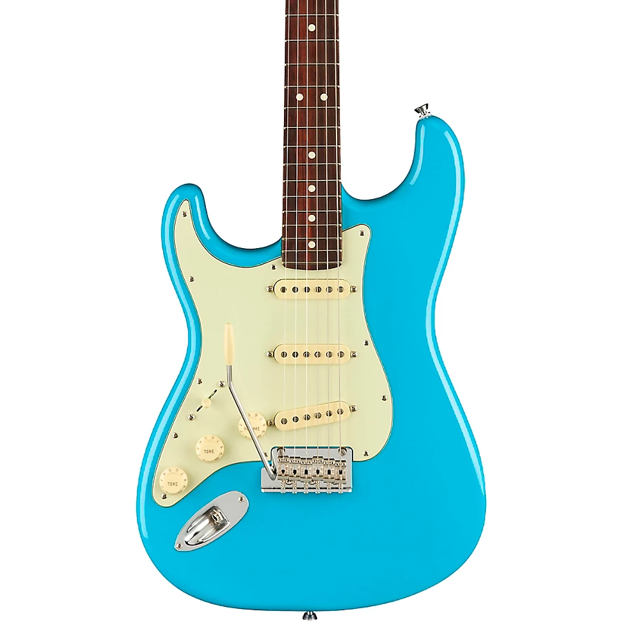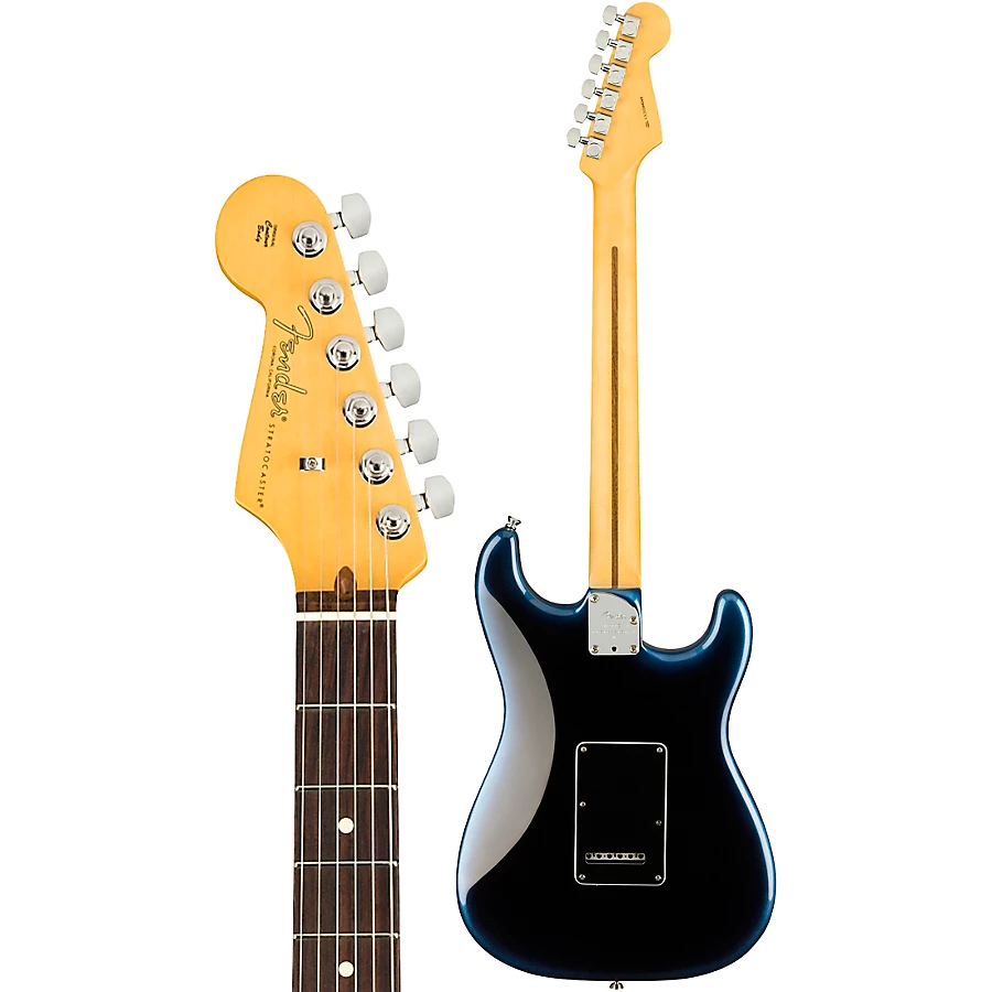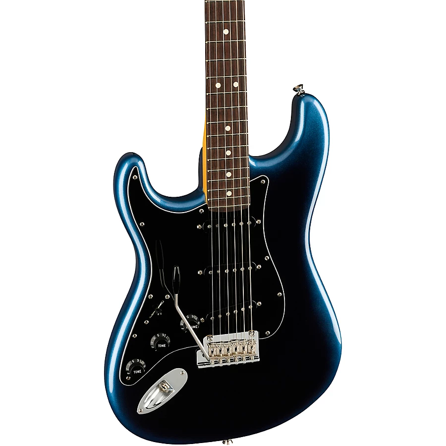 From its bone nut and synthetic bone saddles to its deluxe molded case, the American Pro II Strat left-handed exhibits attention to detail throughout. The saddles improve sustain and enhance string-to-string balance, while staggered tuners improve tuning stability for the tremolo-equipped guitar. A contoured neck heel and rolled fingerboard edges maximize playing comfort. Overall, this left-handed Stratocaster delivers professional grade materials, craftsmanship and tone.