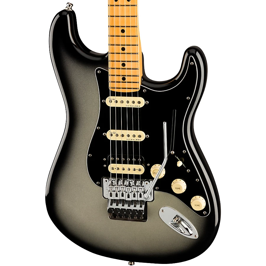 The American Ultra Limited-Edition Stratocaster from Fender is a fashionable blend of performance and tone. This limited-edition Strat is constructed with an augmented ��D�� neck profile with ultra rolled fingerboard edges and a tapered neck heel that provides superior playing comfort and easy access to the highest frets for unhindered soloing. Ultra Noiseless Hot single-coil pickups and an Ultra Double Tap humbucking pickup provide endless tonal possibilities, without hum, while the Original Floyd Rose tremolo system allows for precision vibrato effect and added tuning stability. A premium molded hardshell case is included for portable protection and convenient storage between gigs.