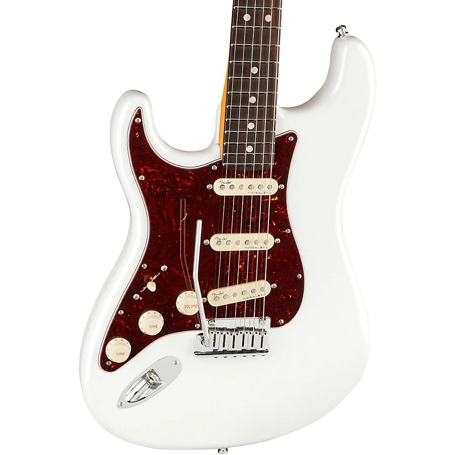 The Left-Handed American Ultra Stratocaster from Fender is designed for discerning guitarists who demand the ultimate in precision, performance and tone. Featuring a ��Modern D�� neck profile with rolled fingerboard edges for extended playing comfort and a tapered neck heel for easy access to the highest register, the American Ultra Strat is equipped with Ultra Noiseless Vintage pickups and advanced wiring options for endless tonal possibilities. Additional features include sealed locking tuning machines, chrome hardware and bone nut. The left-handed American Ultra Stratocaster also includes a premium molded hardshell case. This versatile, state-of-the-art instrument will inspire you to push your playing to new heights.