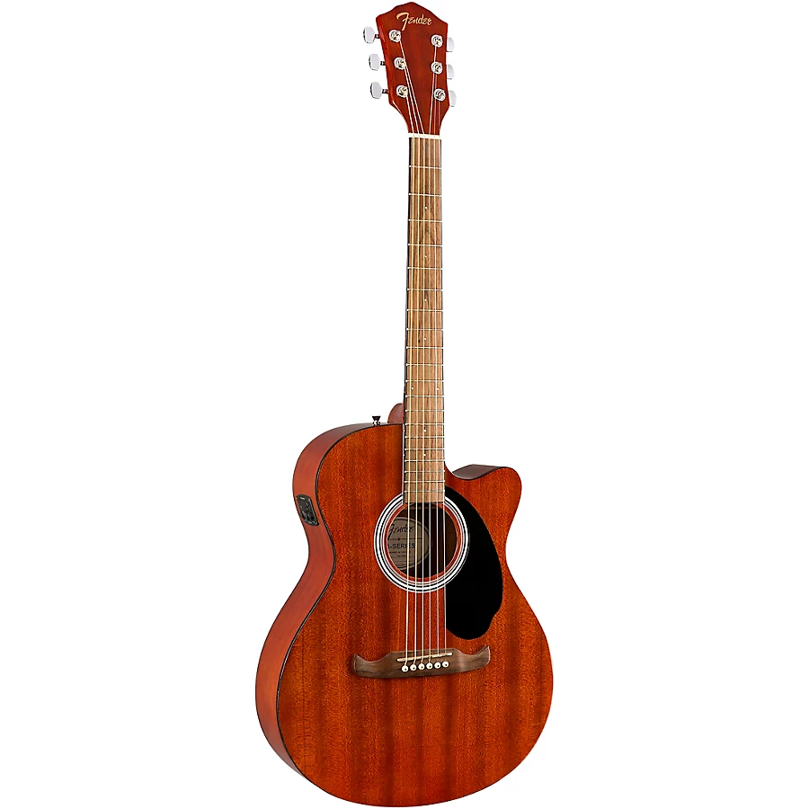 The FA-135CE acoustic-electric guitar from Fender is designed for players looking to amplify their sound. Its solid mahogany top, and mahogany back and sides provide a balanced, resonant tone that rings out whether unplugged or amplified. The built-in Fishman pickup and preamp system offer simple controls to shape your tone, from bright and crisp to full and rounded.
