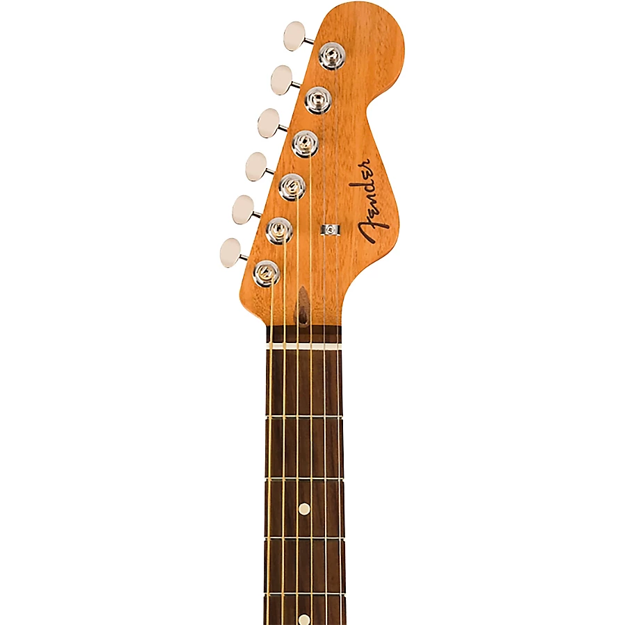 The Highway Series dreadnought is constructed from a fully chambered thinline mahogany body that��s only 2.25" thick and inlaid with a solid mahogany top. On the back of the guitar is a deeply contoured belly carve that ergonomically hugs the player for on-lap or on-strap comfort, even during extended sessions or performances. Internally, the Fender Highway Series body leverages one of the brand��s most advanced construction techniques: a floating ��X�� bracing pattern. The Highway Series dreadnought��s revolutionary design perfectly harmonizes comfort and bold acoustic resonance, for an instrument that looks, feels and sounds exquisite.
