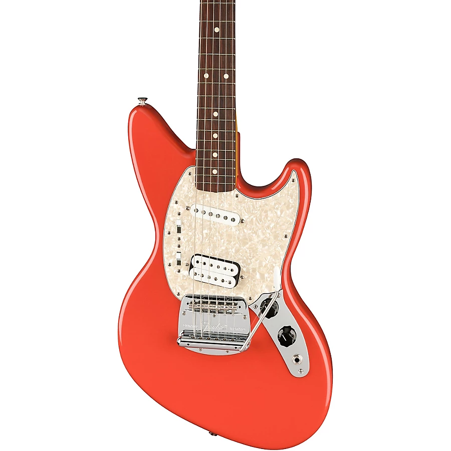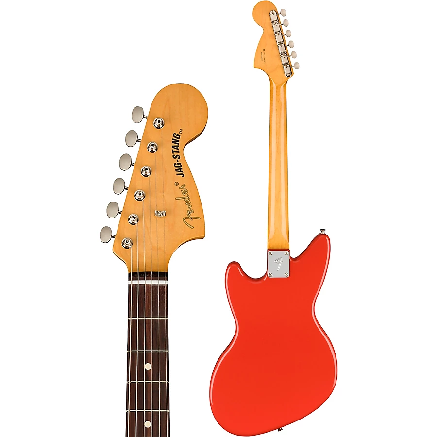 This limited-edition Jag-Stang comes equipped with the same features that made it Kurt��s ideal instrument. The alder body delivers a punchy tone perfect for big power chords, the 24�� short-scale reduces string tension for easier playing and the 7.25�� radius rosewood fingerboard with maple neck has a comfortable feel. The vintage-style single-coil and custom humbucking pickups are perfect for recreating Kurt��s classic tones, while the Mustang slider switches provide the flexibility to dial in four distinct settings for a variety of in- or out-of-phase tones.