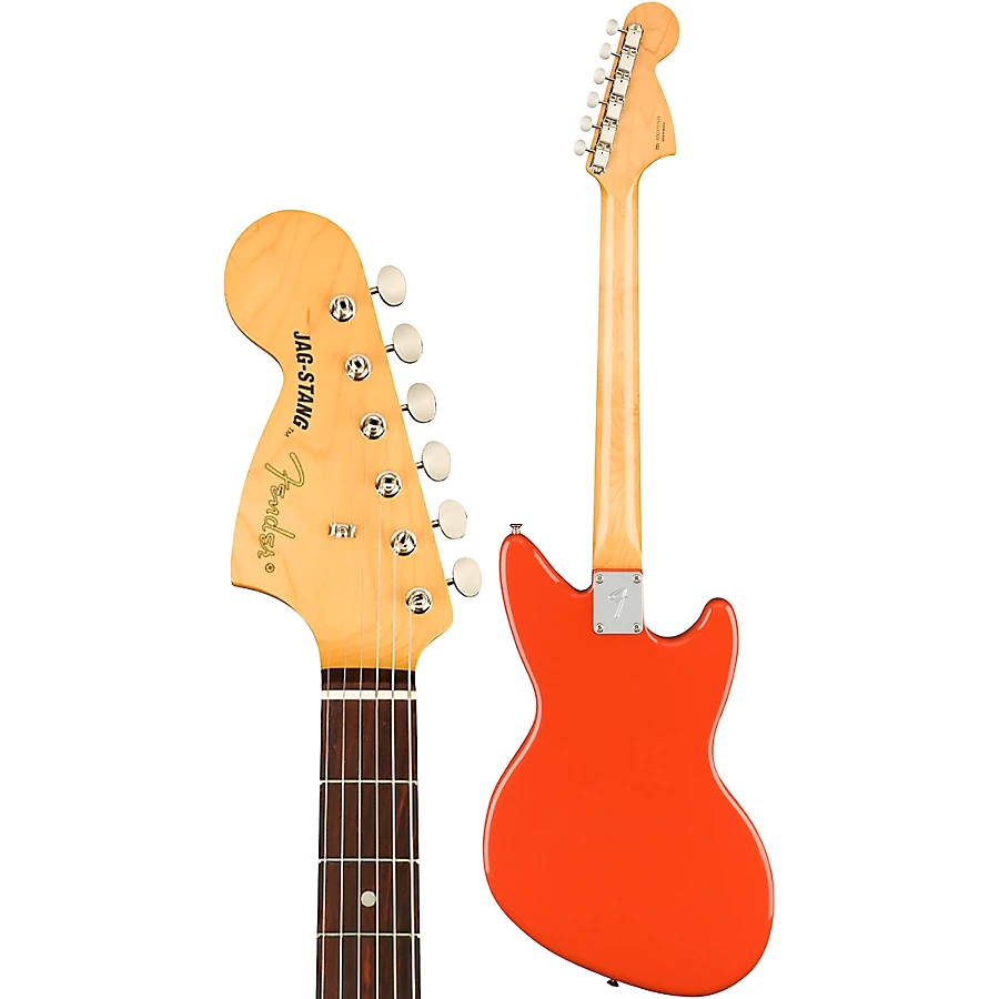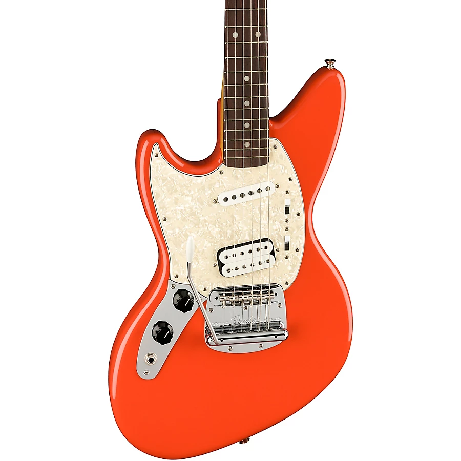 This left-handed Jag-Stang comes equipped with the same features that made it Kurt��s ideal instrument. The alder body delivers a punchy tone perfect for big power chords, the 24�� short-scale reduces string tension for easier playing and the 7.25�� radius rosewood fingerboard with maple neck has a comfortable feel. The vintage-style single-coil and custom humbucking pickups are perfect for recreating Kurt��s classic tones, while the Mustang slider switches provide the flexibility to dial in four distinct settings for a variety of in- or out-of-phase tones.