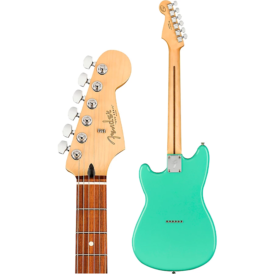 The Fender? Player Duo Sonic is a surprisingly hip guitar with upgraded contemporary features. The alder body has a maple neck, with a comfortable C-shaped profile. The fretboard is pau ferro�� a South American tonewood with a smooth feel that is sonically similar to rosewood, but lighter in color and harder. Smaller hands will feel at home with the Duo Sonic��s 24" scale length, which also allows for bending ease with heavier gauge strings.