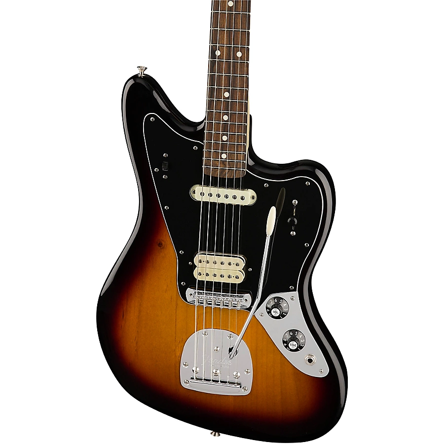 The Fender Player Jaguar electric guitar provides a modern take on the iconic offset instrument. Featuring a sleek alder body and maple neck with a comfortable pau ferro fingerboard, the 24" scale Jaguar encourages you to explore new sounds and playing styles. The Player Series pickups��a crisp single-coil in the neck and a humbucker with a coil-split in the bridge��provide an exceptional tonal range from bright and articulate to full and warm. A redesigned floating tremolo tailpiece offers shimmer and expression while keeping tuning stable. Made for musical adventurers, the Player Jaguar inspires you to create whatever music comes to mind.