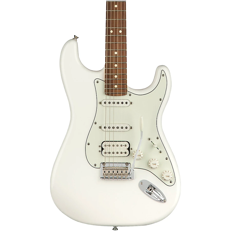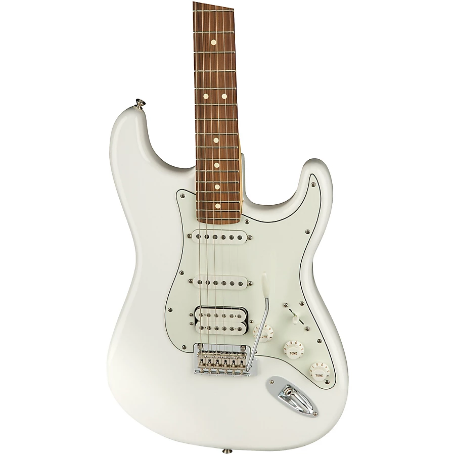 With an alder body, maple neck and pau ferro fingerboard, the Player Stratocaster HSS has an iconic contoured form factor that is lightweight, balanced and resonant. Available in a crisp Polar White finish with chrome hardware, this guitar makes a bold style statement on stage. Suitable for any genre from rock to jazz, blues to country, the Player Stratocaster HSS is a versatile instrument for creating your own signature sound.