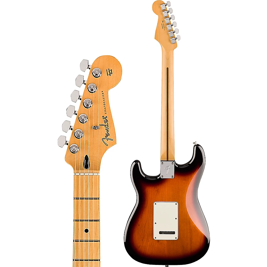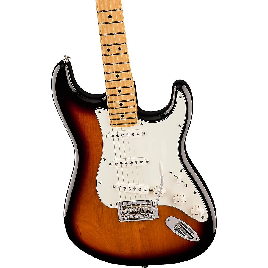 The limited-edition Player Stratocaster maple fingerboard electric guitar commemorates the Strat's 70th anniversary with a stunning 2-Color Sunburst finish. This versatile Strat delivers the inspiring tone that made Fender a legend, now upgraded with modern features for today's musician. Its Player Series single-coil pickups provide crisp, articulate tones perfect for any style. The smooth maple neck and fingerboard feel comfortable during long sessions, while the enhanced 2-point tremolo adds expressive, in-tune playing. Sealed tuning machines provide rock-solid stability. With classic Stratocaster DNA evolved for modern performance, this special edition inspires your creativity.