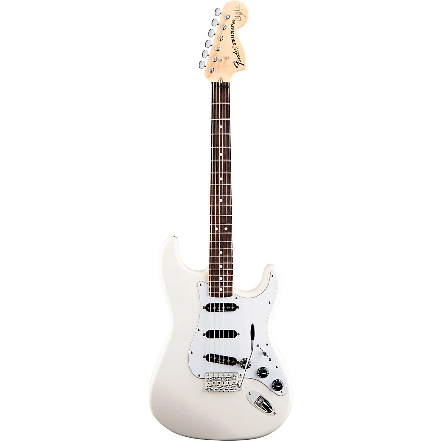 Acclaimed guitarist Ritchie Blackmore has been creating memorable guitar riffs for decades. His deft phrasing, fleet-fingered picking, and unmistakable tone have helped make the phrase "guitar solo" a household term. The Fender Ritchie Blackmore Signature Stratocaster is based on his favorite '70s model and has a maple neck with a graduated scalloped rosewood fretboard, Seymour Duncan Quarter Pound Flat pickups, and '70s-style "F" tuners. Just like Richie's Strat, the guitar's middle pickup has been replaced with a non-working dummy pickup. Deluxe gig bag included.