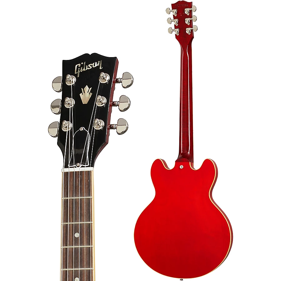 A lightweight maple and poplar body gives the ES-339 a resonant, woody voice. Its semi-hollow design minimizes feedback at high volumes yet produces ambient tone with subtle acoustic properties. A maple top further enhances articulation and note definition. The ES-339's body is comfortable to play during long sessions, ideal for musicians of smaller stature or those simply preferring a more compact instrument.