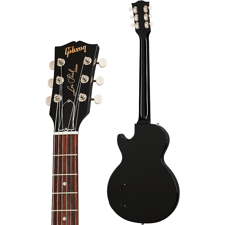 Gibson is proud to offer the Les Paul Junior solidbody electric guitar. This simple but tonally powerful guitar pays tribute to Gibson's Golden Era of the 1950s. Its mahogany body and neck provide a full, rich tone, while the dogear P-90 pickup delivers a range of vintage-inspired sounds. With just volume and tone control, dialing in your perfect tone is a cinch. The '50s-style neck profile offers comfortable playability and the wraparound bridge provides solid intonation.