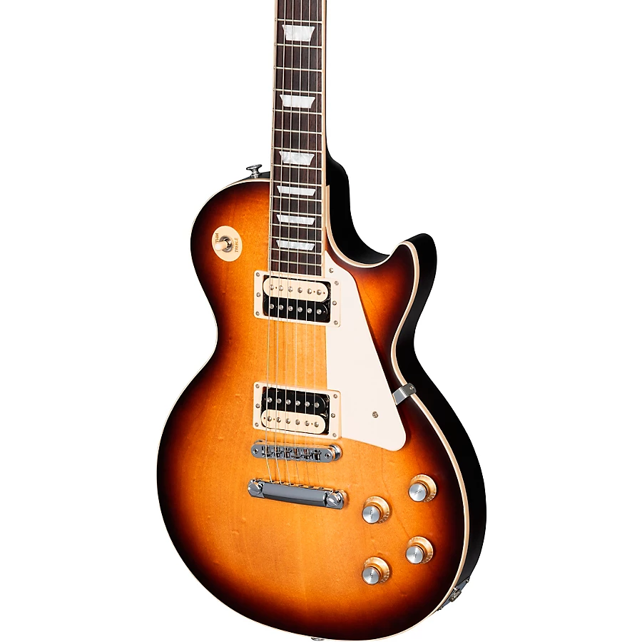 The Gibson Trad Pro V is loaded with a pair of Tradbucker pickups that really pack a punch. In the neck position, the humbucker is underwound, which produces a warm and organic sound. In contrast, the pickup in the bridge position is overwound, which increases the output. With accompanying Alnico V magnets and a push/pull that performs a coil split or a coil tap, you can tweak your tones to your heart��s desire. When you��re in coil-split mode, the treble tone push/pull toggles between the inner and outer coils. Alternatively, the rhythm tone push/pull will activate a phase switch, which is ideal when your tone pool is filled with deep British blues.?
