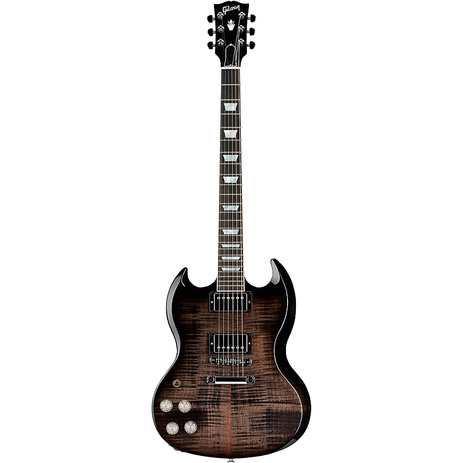 Bringing together the iconic SG design with the updates contemporary players desire, this left-handed Gibson SG Modern is more than just "the next version" of a classic. With Les Paul-style maple on mahogany construction, it's got plenty of sustain and lively resonance. The 24-fret, compound-radius ebony fingerboard on a set-in asymmetric-profile mahogany neck is smooth and fast, and the Alnico V BurstBucker Pro pickups with coil taps goes from full power to P-90-style single-coil sounds and back with the simplicity of push/pull volume knobs. Locking Grover Rotomatic tuners, self-lubricating GraphTech nut and Nashville-style tune-o-matic bridge keep the tuning stable and intonation exact. This is a guitar that players will pick up and never want to set back down.