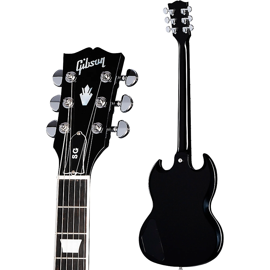 This limited-edition Gibson SG Standard rocks classic looks and features appointments associated with the late-60s-style sought after by many. A rounded profile mahogany neck, ebony fingerboard, long tenon 19th fret neck joint and a solid mahogany body provide the backbone for singing sustain. The 490R and 490T Alnico II pickups provide the power to drive. A black, 5-ply, full-face pickguard is also included.