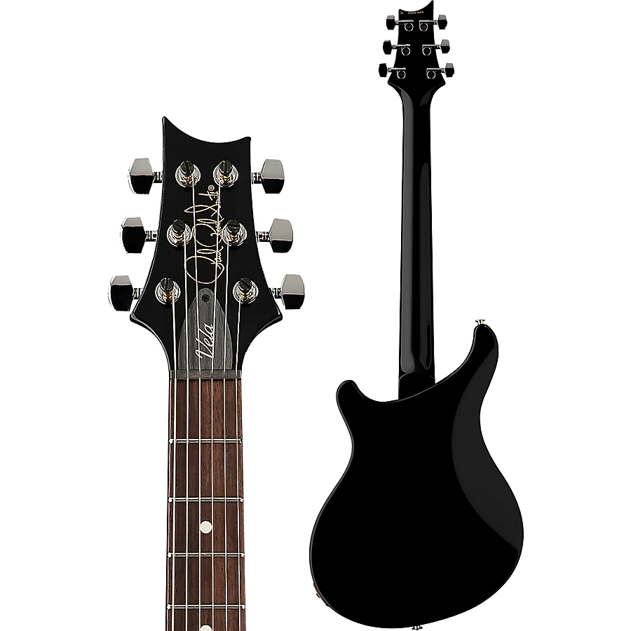 Vintage-inspired but thoroughly modern, the PRS S2 Vela Semi-Hollow features an elegant, offset body shape with plenty of attitude. The semi-hollow mahogany body makes for warm, inviting sound that still has a rock-and-roll edge. The coil-tapped Vela humbucker in the bridge and Type-D Singlecoil in the neck position bring plenty of tonal versatility to the game. The top-loading, plate-style bridge delivers ample sustain with easy restringing. This one is definitely not a cookie-cutter guitar. Includes deluxe gig bag.
