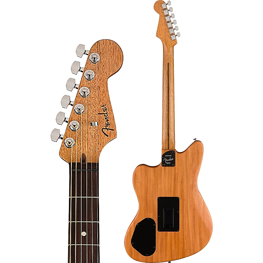 Fender continues to explore the sonic possibilities of an acoustic-electric hybrid guitar with the Acoustasonic Player Jazzmaster. Purposefully streamlined and equally versatile, this guitar intuitively transitions from acoustic to electric voices with the 3-way switch, or from clean to driven with a turn of the Blend Knob. The Acoustasonic Player Jazzmaster delivers unlimited inspiration, versatility and accessibility for the next generation of modern musicians.