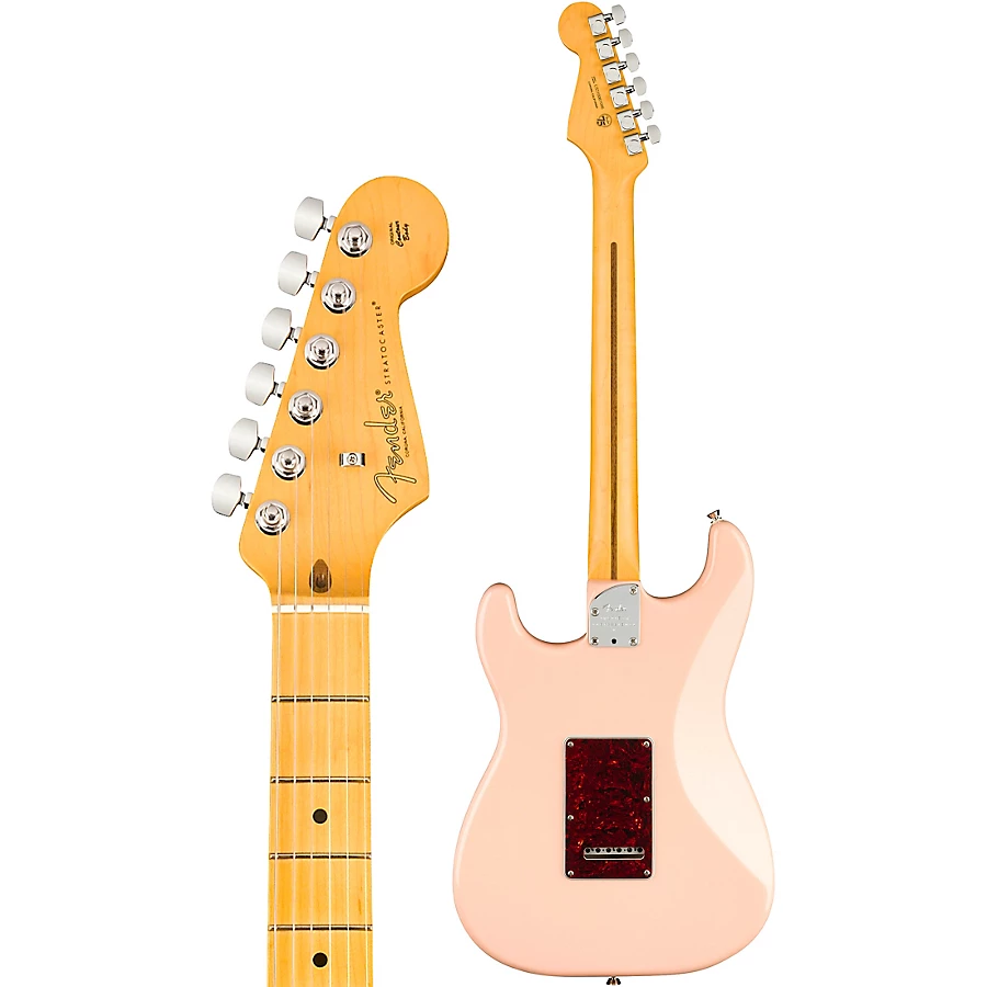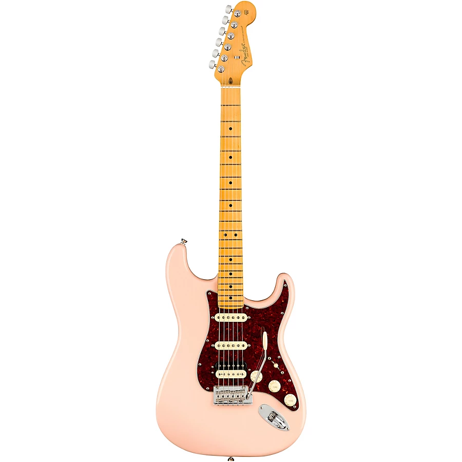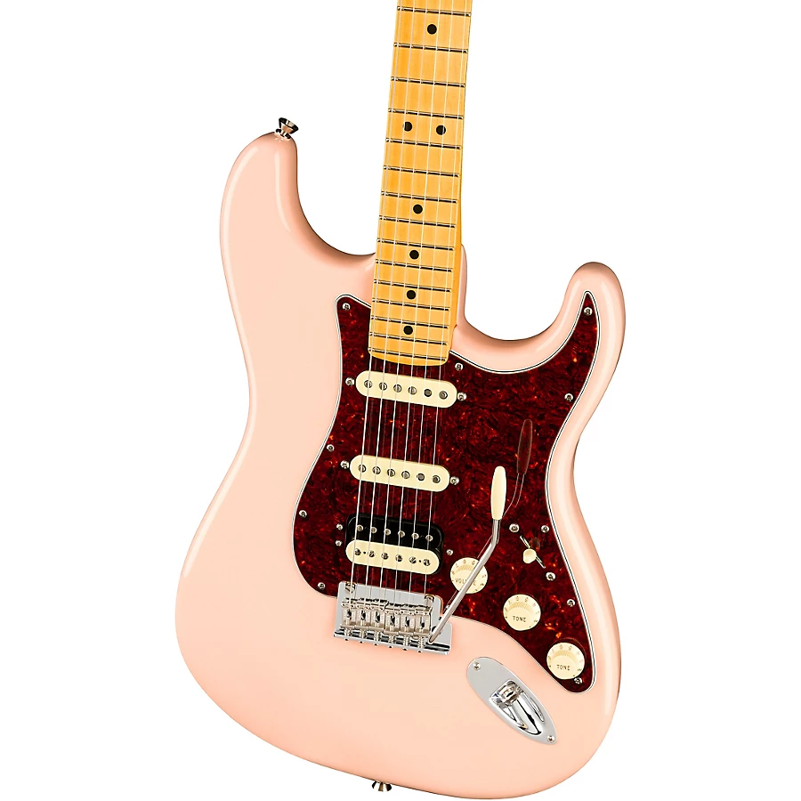 The Fender American Professional II Stratocaster HSS is a revolutionary electric guitar that blends vintage-inspired tone with modern performance features. Upgraded with brand new V-Mod II pickups��specially tuned to deliver articulate, balanced tone��this Strat pumps out punchy sounds across its sonic spectrum. A sleek satin-finished maple neck and narrow tall frets make for an ultra-fast playing experience, while the two-point tremolo system yields a sparkling, expressive tone with increased sustain. The contoured neck heel provides effortless access to higher frets. Overall, the American Pro II Strat HSS is a bold and innovative take on a timeless classic.