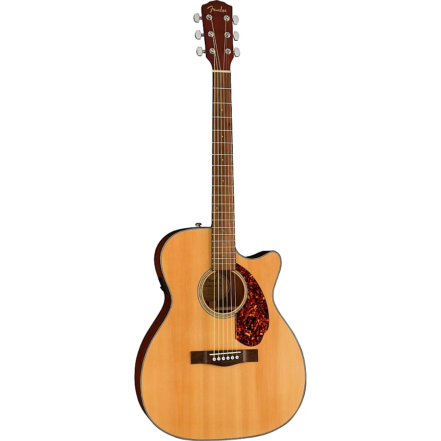 The Fender CC-60SCE acoustic-electric guitar boasts exceptional features for an instrument of its class, including a solid spruce top, rolled fingerboard edges and easy-to-play neck shape. The CC-60SCE is a mid-level Classic Design model and features a cutaway body for easy upper-fret access, as well as an onboard Fishman pickup, preamp and tuner. The concert-sized body provides intimate, well-balanced tone and a more comfortable feel for smaller-framed players. A great choice for the budding singer-songwriter, the CC-60SCE acoustic shines with fingerpicking and strumming alike.