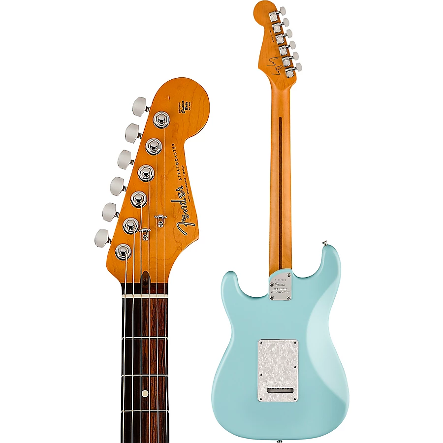 Other features include a maple neck with a subtly modified headstock shape, rosewood fingerboard with rolled edges and a compound 10�C14�� radius, vintage-style 6-screw synchronized Tremolo, deluxe locking tuners that provide improved tuning stability and easy string changes, and a push/push pot on Tone 2 that bypasses the 5-way switch and defaults to "Position 4." Also included is a Cory Wong hair tie (for muting the tremolo springs to achieve Cory��s rhythm tone), rubber straplock washer set and custom neck plate.