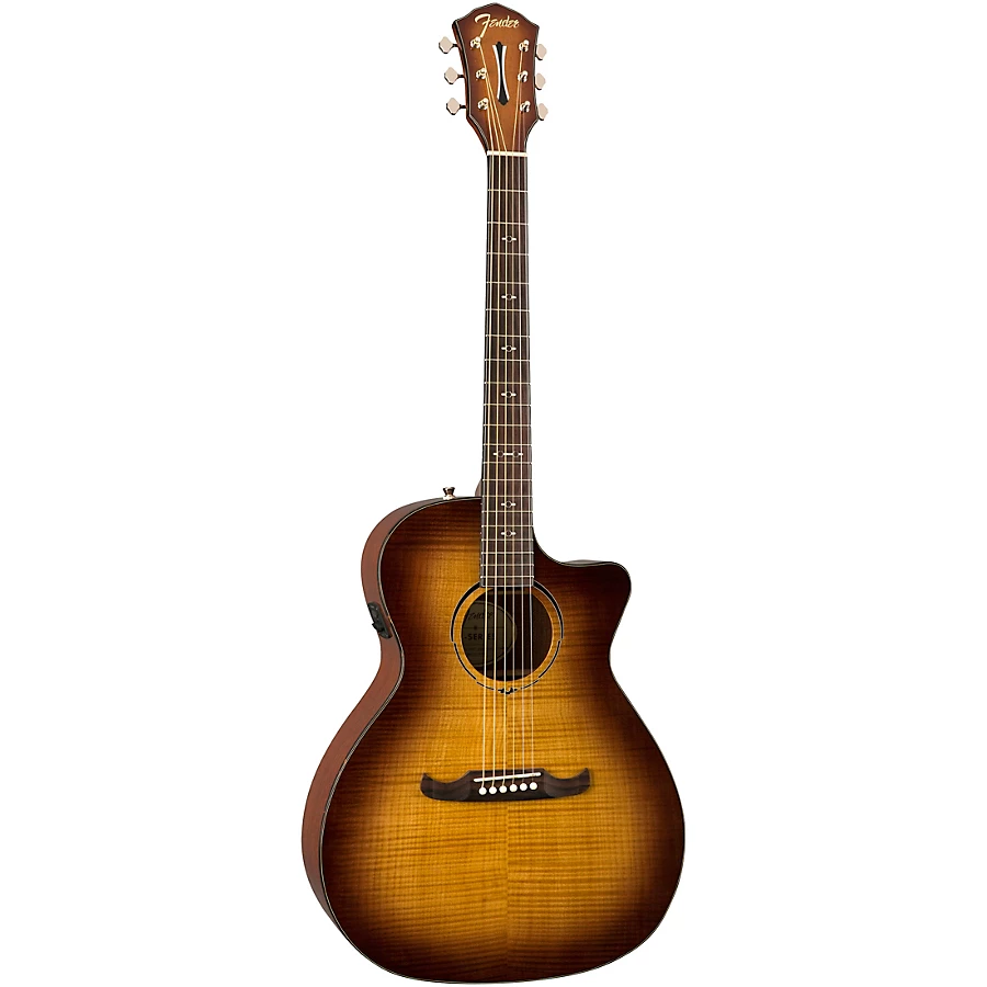 An instrument that sounds as good as it looks, the FA-345CE acoustic-electric offers you legendary Fender sound and performance in a single-cutaway body. With quality laminate construction, including lacewood back and sides and a flame maple top with tortoiseshell binding, along with a modern Fender 3+3 headstock and Viking bridge, the FA-345CE is an easy-playing instrument that just happens to sound amazing as well. Its modern Fishman electronics also allow you to take your sound to the stage with ease. Developing and experienced players alike will appreciate the FA-345CE's mahogany neck, which gives the guitar a lively tone while complementing the flame maple top.?