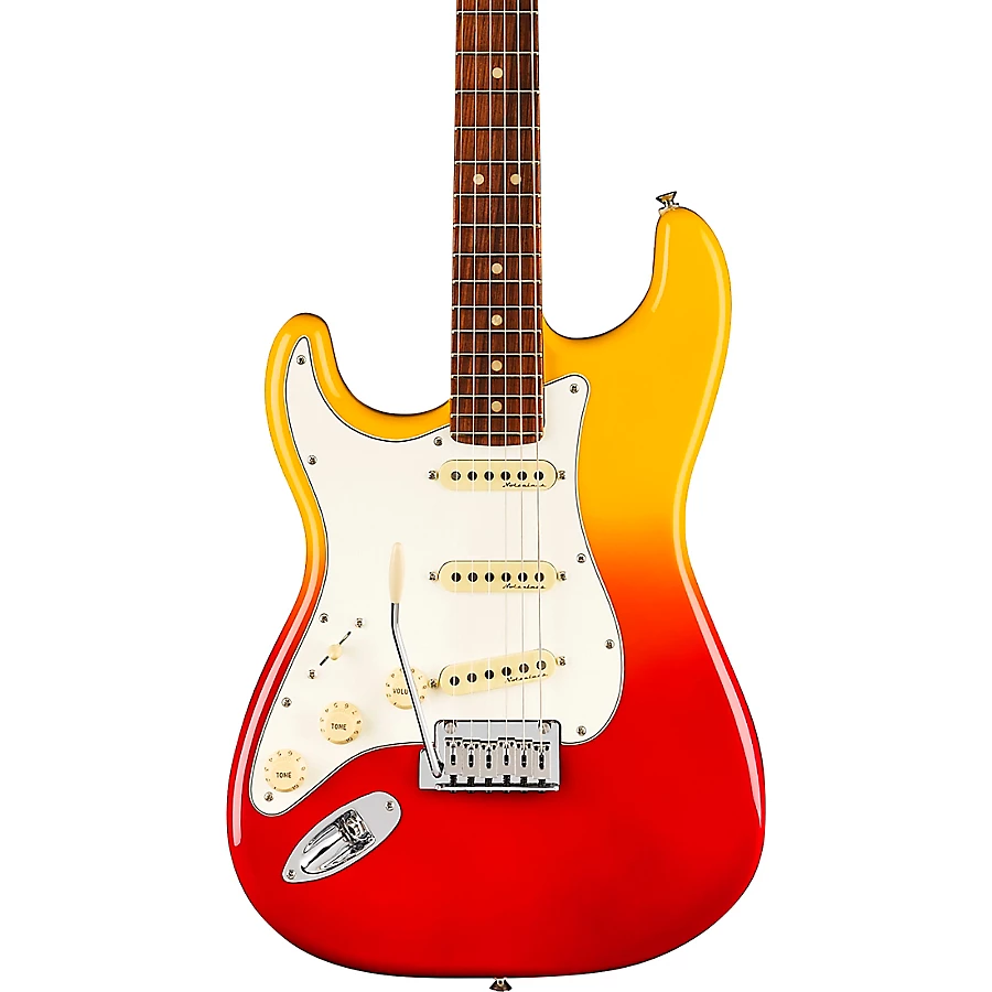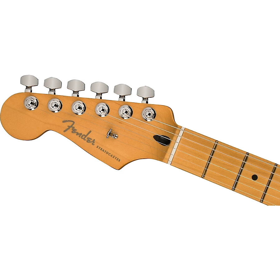 The Fender Player Plus Stratocaster left-handed electric guitar fuses classic Fender design with player-centric features to deliver superb playability and unmistakable style. At the heart of this Strat is a trio of bright and sensitive Player Plus noiseless pickups, offering classic Fender tone without any hum. What makes this Strat a cut above the rest is a push-pull pot on the tone control that adds the neck pickup to switch positions 1 and 2, for two sounds not usually found on a Strat. A silky satin modern "C" Player Plus Strat neck fits your hand like a glove, and smooth rolled edges offer supreme comfort. It��s 12" radius fingerboard and 22 medium jumbo frets facilitate fluid leads and choke free bends. Smooth and responsive, a 2-point tremolo provides classic vibrato effects, while the locking tuners provide rock-solid tuning and make string changes quick and easy. With classic fender style, advanced features and stunning new finishes, the player plus Stratocaster is the perfect tool to spark your creativity and stand out from the crowd.?